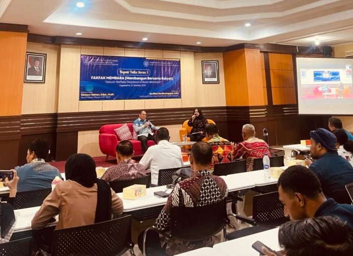 Yogyakarta (22/10/2025) – Program Studi Magister dan Doktor Kepemimpinan dan Inovasi Kebijakan (MDKIK) Sekolah Pascasarjana Universitas Gadjah Mada bekerja sama dengan Pusat Studi Kependudukan dan Kebijakan (PSKK) UGM menyelenggarakan kegiatan Bupati Talks bersama Bupati Kabupaten Fakfak, Samaun Dahlan, S.Sos., M.A.P., pada Rabu, 22 Oktober 2025. Acara yang bertajuk “Fakfak MEMBARA (Membangun Bersama Rakyat): Refleksi Perjalanan 8 Bulan Memimpin” ini berlangsung di Gedung Masri Singarimbun, Yogyakarta, dan dihadiri lebih dari seratus peserta dari berbagai kalangan akademisi, mahasiswa, serta praktisi kebijakan. Dalam sesi dialog tersebut, Bupati Fakfak, Samaun Dahlan, memaparkan dua program prioritas yang menjadi fokus utama pemerintahannya selama delapan bulan pertama masa jabatan, yakni pendidikan gratis dan layanan kesehatan gratis bagi masyarakat Fakfak. Ia menuturkan bahwa kebijakan tersebut lahir dari pengamatannya terhadap kondisi sosial masyarakat yang masih banyak mengalami keterbatasan akses terhadap pendidikan dan layanan kesehatan karena faktor ekonomi.